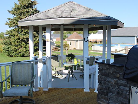 Call 734-347-2201 to schedule your appt. today!! 2 Story Colonial with 4 beds, 2.5 baths and 2 car attached garage. Master Bedroom has tray ceiling. Home has plenty of storage including the floored storage area in garage. Large mud room. Open concept kitchen & great room. Brand new LG stainless steel appliances, granite counter tops and beautiful glass tile backsplash. Partial finished basement with wet bar area. Great place for the kids to hang out or that man cave hideaway. Large yard with invisible fence to keep the pet in but the view unobstructed. Nicely landscaped. Large deck, gazebo, built in natural gas stainless steel grill set in flagstone and granite counters. Poured stamped fire pit in large back yard. 10x12 shed to store those additional toys.