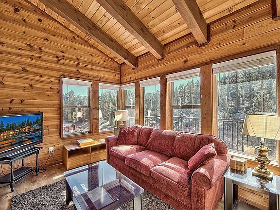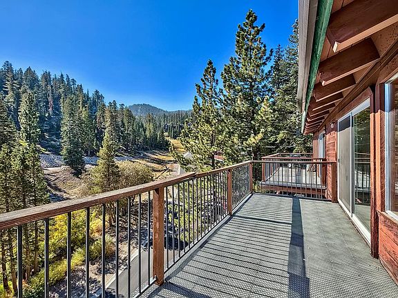 There are two bedrooms and a full bath downstairs along with the kitchen, living room, patio and common area. Upstairs, there is a third bedroom and another full bath. This is the penthouse condo—there is nobody above you. Sit on the deck overlooking Heavenly’s Stagecoach Run and watch your friends come down the slopes. The condo is part of Tahoe Village which includes a community pool and spa.