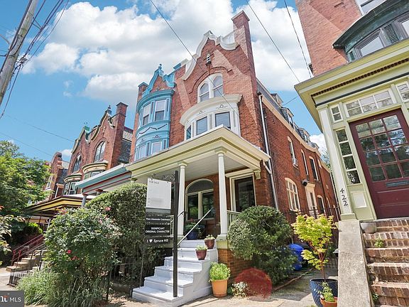 Warm and wonderful Spruce Hill twin with significant character on a desirable tree-lined block in the Penn Alexander Catchment. 5 bedrooms plus a family room, 2.5 baths. Front porch and lovely rear yard. The original character includes high ceilings, original hardwood floors, detailed woodwork, window seats, leaded glass, and original moldings. ✅ Step past the garden that leads to the comfy covered front porch. Through the original solid wood and glass door is the foyer with original woodwork and into the entrance hall with beautiful woodwork, leaded glass, hardwood floors, and high ceilings. The living room, separate dining room and updated eat-in-kitchen are all cheerful and bright spaces with lots of character. The kitchen also has a small sitting area with Marvin French doors that lead out to the spacious rear patio. Half bath and great storage. ✅ The original hardwood floors and character continue on the 2nd floor, which has a huge front-facing family room (or a large bedroom), a middle bedroom, and another large bedroom in the rear. Either the front or rear could be primaries. Nice hall bath. Ample closet space. ✅ The 3rd floor (also with hardwood floors) has nice-sized front and rear bedrooms with an open family room in between—a really awesome layout. An updated full bath in the hall. The rear bedroom has a mini-kitchen with plumbing and a washer-dryer. The kitchen could easily be removed. ✅ This home has splendid spaces, excellent character, and a smart and flexible layout that can work for a lot of uses. It also offers an ideal location—Easy walk to Clark Park and its fabulous Farmers' Market, Knockbox Cafe, ReAnimator Coffee, Baltimore Avenue's Restaurant Row (so many places to eat), Penn Alexander Catchment School, Clarkville, Green Line, TacoTaco Mexican, Local 44 and the Bottle Shop, CVS, and so many coffee shops, restaurants, and shopping. Close to HUP, CHOP, Penn, Drexel, UCity Tech/Science Corridor. 11 minutes to Center City by car or bike and plenty of convenient SEPTA options. ✅ Property Notes—The seller believes this home has a mix of modern and knob & tube wiring. The sellers have retained a fire-escape specialist removal company to remove the rear fire escape. They have a definitive proposal, but the company is booked into the summer, so sellers can provide proposal and arrange for work to be done (and pay for it).