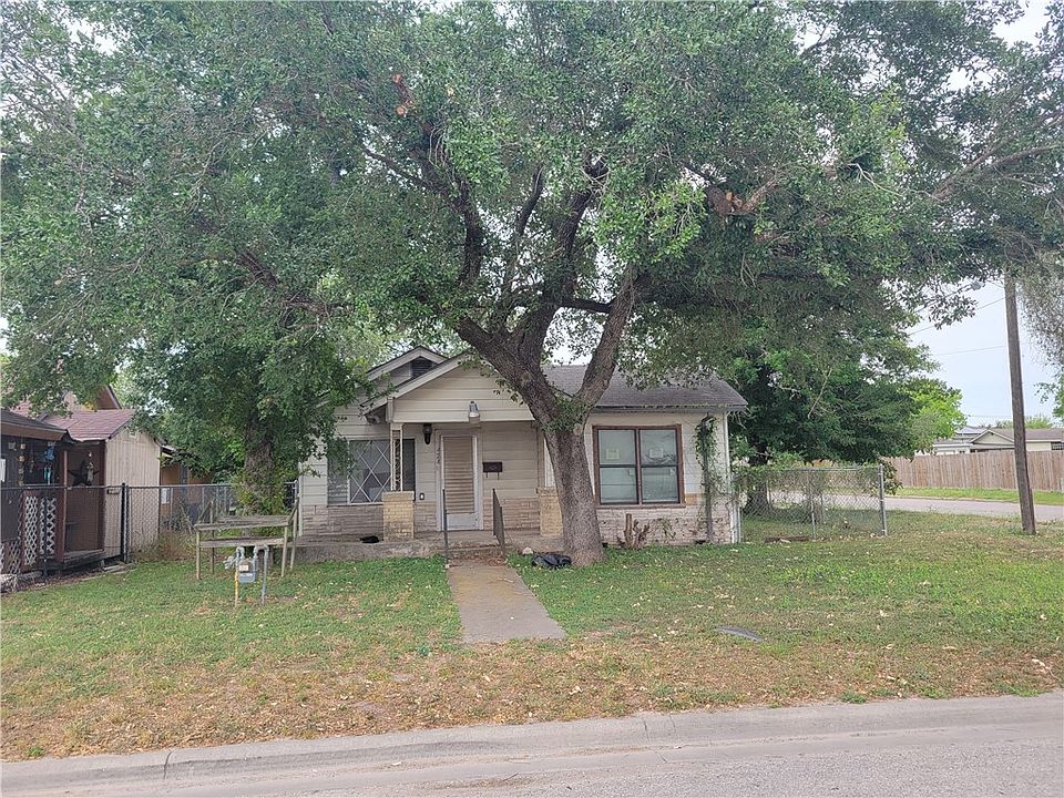 This cute home on the corner of Prospect and South Aransas is ready for a bit of TLC and some new owners. The original home had 2 bedrooms, a living room and 1 bathroom. The original owners added a large den with a 1/2 bath and a closet with washer and dryer connections. There is a detached garage with a workshop attached to it. Great starter home for someone who is tired of paying rent!