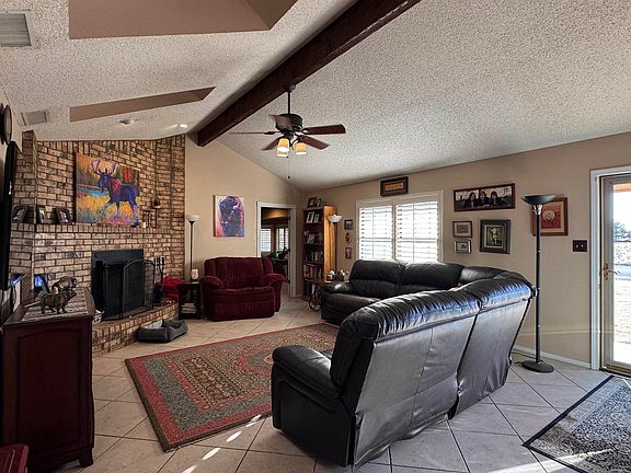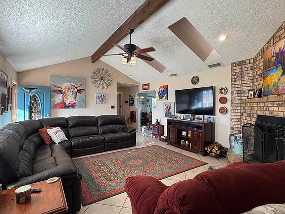 Beautiful, established home in Tatum on three lots. Walk in the front door into a gorgeous living room with a brick accent wall, skylights, and a wood burning fire place. Off to one side of the home is the master bedroom with a walk-in cedar-lined closet. The master bath has a jetted soaking tub and a separate large walk-in shower. On the other side of the home are three bedrooms, one of which has its own ensuite bathroom. Another bath down the hall is perfect for guests and entertaining. The dining room opens out to the beautiful backyard with sliding glass doors. A large, wide galley kitchen gives plenty of storage and cooking space. Appliances included are the kitchen refrigerator, the gas stove with convection oven, built-in microwave, and dishwasher. The kitchen opens into what is currently being used as a small office space but could be reimagined as a breakfast nook, more storage, or just about anything you can think of. The laundry room and pantry follow with another door opening to the manicured backyard. Both the front and back yard have sprinkler systems which keep it looking beautiful year-round. Although it's hard to tell in late winter, perennial flowerbeds spring to life in the summer, giving the yard masses of color with very little effort. Established trees, a solid cinderblock fence, and a storage shed complete the back yard. The side yard consists of an RV cover with hookups and a water well that services the yard. Home is also equipped with a water softener and reverse osmosis system in the kitchen and is currently wired for Vivint although the contract is month to month so a new buyer is under no obligation to keep the service. This home is gorgeous. Do not miss out. Schedule a showing and find out how you can make it yours today.