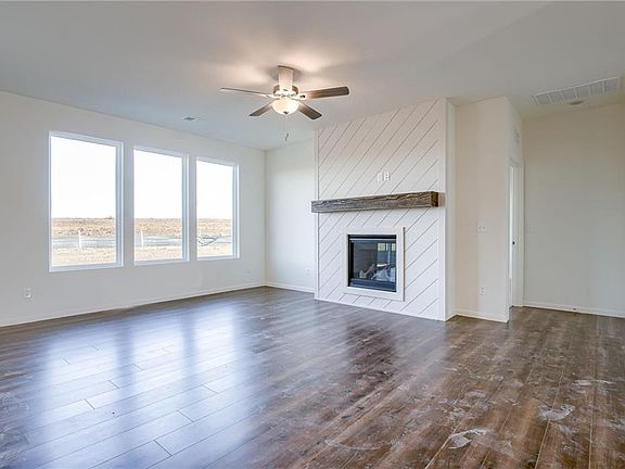 The Magnolia by Ashlar Homes. Enjoy main level living in this 3 bedroom, 2 bath home that features 9-foot main level ceilings, quartz countertops in the kitchen with tiled backsplash, fireplace with wood stained mantle, LVP flooring throughout entry, kitchen, dining, and great room. The kitchen is spacious with an island and walk-in pantry. The primary suite bathroom has a shower, double vanity, linen closet, and large closet. Located in the new and upcoming community of The Woodlands at Chapman Farms. Community amenities will include a swimming pool, 9 acre lake for fishing, a walking trail around the lake, playground and a sport court. Maintenance Provided options available.