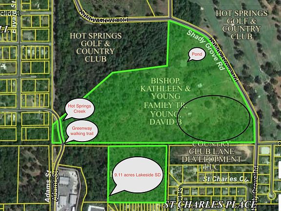50 acres adjoining the Hot Springs County Club! This Property known as the Unseen Fox Farm has picturesque views that are usually only found on a jigsaw puzzle. From pond to stream, flat land to rolling hills, it’s hard to believe that you're in the middle of town. Look across the road to the beautiful greens or up across the vista horizon of the Hot Springs skyline. With about 270' on Hot Springs Greenway and Hot Springs Creek, This property has it all. Zoned R2. Fox not included.