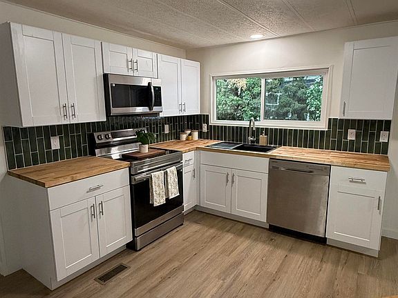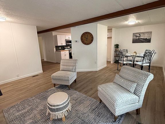 This modern, freshly renovated home is move in ready, offering comfort, style, and ample space inside and out. Enjoy your massive master bedroom with en suite bathroom. Cook for the crowds in your huge kitchen, featuring brand new cabinets, butcher block countertops, trendy tile backsplash and new stainless steel appliances. New LVP, interior paint, and updated lighting throughout. This home has a double parking space, fenced yard, side area perfect for a small garden, and giant powered storage shed ready for all your home projects. Embassy Mobile Home Park is an affordable mobile home community, conveniently tucked away in the heart of Meridian; you'll be close to EVERYTHING! Minutes from the Village at Meridian and the Hwy 84 Meridian Rd exit, this well kept park is clean and quiet. Lot Rent is currently $605 (Water/Sewer/Trash is approx. $100/mo and paid to park) for remainder of 2025. Beginning 1/1/26, lot rent will be $650. Financing is available. Call Listing Agent for list of mobile home lenders.