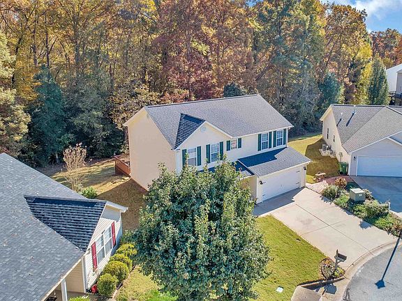This is a beautiful two story home just over 2200 sq.ft. at the end of a level Cul-de-sac . When pulling up you are greeted by a well kept yard surrounded by other well cared for neighboring yards . The backdrop of large mature trees that are partly on this lot gives you an immediate peaceful feeling. When relaxing on the open 21'x16' back deck or within the separate 13'x12' covered deck area you are truly transported to your own oasis as you cannot see neighbors on either side or even behind as there is hundreds of feet of Hammett Crossing's wooded green space behind your lot. The home is a 4 bedroom , 2.5 bath home with a living room, dining room and large family room w/ gas log fireplace on the main level. The kitchen is an easy pass through from Dining room to Family room with bar counter area and nice stainless steel appliances. Included in this sale is the stainless refrigerator too. Four spacious bedrooms upstairs with two full baths. The Master suite is well appointed and the whole depth of the home. There are two HVAC systems ( both compressors replaced 2018,2019 per seller ) for better efficiency as well as vinyl tilt-in thermal windows. Roof replaced with 30 year warranty Architectural shingles in 2018 per seller. Make friends and gather for fun and picnics at the subdivision amenities which includes a nice pool and cabana area and small playground. A wonderful way to enjoy life. Fantastic location just a mile from grocery stores , medical offices , schools and restaurants. Just 20 minutes to downtown Greenville for fine dining and entertainment as well as 5 minutes to downtown Greer for the same. If needed , the GPS International Airport is just 10 minutes away as well as I-85 yet you are still among a very peaceful setting at home. Make this your home!