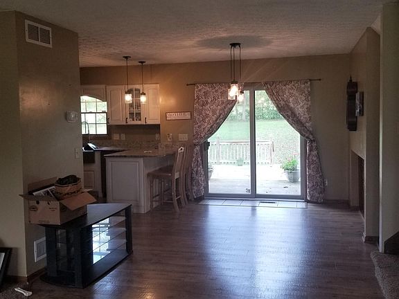 This home has a beautiful private setting with amazing views! With a covered front porch and large back deck there is plenty of space to enjoy the outdoors. Inside you will find an updated kitchen with impressive cabinets and counter tops, a farm sink and eating bar. Updated bathrooms, owner's suite with full bath and walk in closet. 2 large family room spaces plus 2 additional rooms perfect for bedrooms, home office, exercise room, etc. The finished space goes on and on. Square footage does not include the additional finished areas. Two car attached garage plus a two car detached garage with a covered porch, concrete floor and electric. Nice level lot with some woods. This home is located just a few short minutes from Route 33 and the bypass.