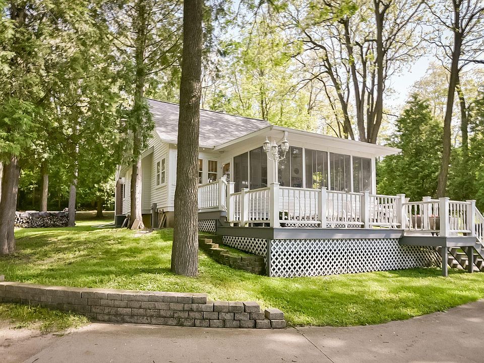 Amazing find just minutes from downtown. Enjoy the scenic drive to this home, reminiscent of a retreat in the woods; it will captivate your senses. This welcoming home is nestled into 2 acres with 311 ft of Milwaukee River frontage, but has easy access to highway for commuting. Original wood floors, wooden beams & beautiful details you don't want to miss!Enjoy summer afternoons in the 3 season room overlooking the river or enjoy campfires in the evening. This Home boasts a nat.fireplace, a den off the main entrance, & plenty of bright sunlight! One car attached garage and 2.5 detached garage. Room to expand. Conservancy and farm across the River will never be built on. Private living. This 1700 sq foot home is the perfect forever home or waterfront retreat.A rare find. See it today!
