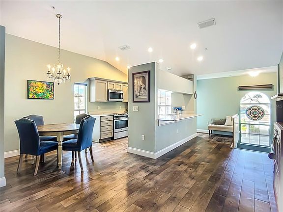 Welcome to this beautifully updated 3-bedroom, 2-full bath condo in the gated community of Pinestone at Palmer Ranch, just minutes from the world-famous Siesta Key Beach. Step inside to discover a complete interior transformation that blends modern elegance with comfortable living, featuring fresh paint throughout, upgraded quartz countertops, soft-close cabinetry with custom pullouts for effortless organization, and durable luxury vinyl plank (LVP) flooring that provides the appeal of wood with superior water resistance, low maintenance, and long-lasting performance. The open floor plan galley kitchen shines with stainless steel appliances, including a range, microwave, dishwasher, and refrigerator, all complemented by abundant natural light. The spacious living and dining areas boast vaulted ceilings, creating a bright and expansive feel, perfect for entertaining or relaxing. In the master suite you'll find a large bedroom with a a generous walk-in closet offering ample built in shelving and storage solutions. The en-suite bath impresses with a luxurious walk-in shower enclosed by frameless glass, modern tilework, and a stylish vanity. Two additional bedrooms provide versatile options—one is currently used as a private gym and the other as a flex room. Both are true bedrooms with closets. The Florida room is under air and has been incorporated into the living area that faces the wooded back view. The guest bathroom has been thoughtfully updated with a tub-shower combo, oval mirror, and quartz vanity. 2016 AC, 2018 roof on the building & full re-plumbing on this block building for peace of mind. Convenient carpeted – in unit attic storage. As a resident of Pinestone, you'll enjoy an unparalleled resort-style lifestyle with premium amenities designed for relaxation and recreation, including a state-of-the-art fitness center, pickle ball courts, lighted tennis courts for evening play, a junior Olympic-sized pool and spa for unwinding, a billiards room, full shuffleboard courts, a basketball court, Spa, and a banquet hall for gatherings. Cozy up around the fire pit or host barbecues in the grilling areas equipped with new poly furniture. For entertainment, the private theater offers stadium seating and a popcorn machine—perfect for movie nights or watching sporting events. Water, sewer, trash, maintenance for grounds, maintenance exterior, and building maintenance is included. Also included is an assigned carport spot with a short, convenient walk to all community facilities. Close to the beaches, downtown, shopping & dining that Sarasota is famous for. This condo offers the ultimate in low-maintenance, amenity rich Florida living -schedule your viewing today!