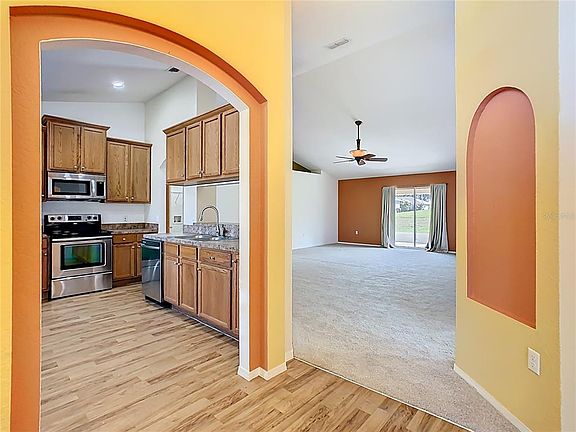 ***Price Improvement to sell*** Do not miss seeing this beautiful home with a new roof and new lawn installed. This model is The Roanoke. As you walk through the door to the foyer, on the left is your kitchen with vaulted ceilings plus a breakfast nook and on the right a nice-sized dining room. Walk straight to the extended Great Room 18.8x23.4, which in this particular Model is an upgrade. To the left of the Great Room are two bedrooms with the second bathroom. To the right is a nice size Master Suite with Tray ceiling and crown molding and also a his and hers walk in closets plus the Master bath with a jacuzzi/jet and a separate walking shower. The kitchen has a breakfast nook and a pantry. From the Great room you can walk through the sliding doors to the lanai, which is a decent size to relax after a busy day at work. There is also a playground in the community.