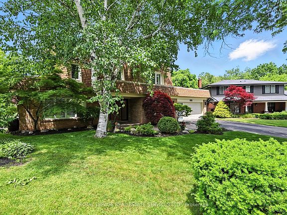 SOUGHT-AFTER SHOREACRES! LUXURIOUSLY UPDATED! Nestled on a picturesque tree-lined street in one of South Burlington's most desirable neighbourhoods, this stylish four bedroom residence strikes the perfect balance of modern elegance and family functionality. Incredible 112' pie-shaped lot, 96' wide across the rear and backing onto Shoreacres Creek, offering the ultimate in privacy! With approx. $150K in high-end improvements, every detail has been carefully designed for today's lifestyle. The open concept main level features hardwood flooring, a spacious living room, formal dining room with woodburning fireplace, private home office/den, and a family room with heated slate floor and garage access. The gourmet kitchen is appointed with granite counters, S/S appliances, pantry, and built-in desk, while the adjoining breakfast area opens to the backyard for effortless indoor-outdoor living. A designer powder room and laundry room with additional yard access complete this level. Upstairs, hardwood flooring continues throughout. The primary bedroom boasts a walk-in closet and updated three-piece ensuite, while three additional bedrooms share a spa-inspired five-piece bathroom with double sinks - perfect for a growing family. Significant upgrades include a custom oversized Dako entrance door (2020), LED pot lights (2025), travertine tile in foyer and bathrooms, Hunter Douglas blinds, designer lighting, powder room and ensuite (2022-toilets, vanities, Kohler and Moen fixtures), outdoor lighting (2025), fencing and new trees (2024-left side of property), and custom iron and wood gates (2019). The landscaped backyard showcases a natural stone patio and walkway, Napoleon gas firepit, and hot tub. Steps from Nelson High School and Nelson Park with its recreation centre, pool, splash pad, skate park, and BMX track, this home offers exceptional access to family amenities. Shopping, parks, and the lake are nearby, while transit, highways, and the GO Train make commuting simple.