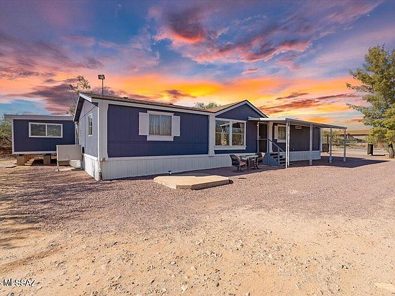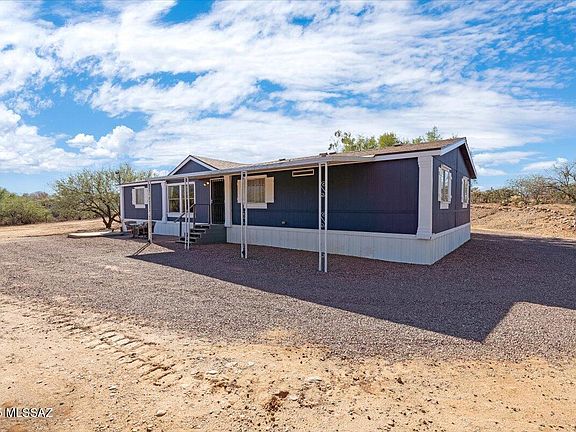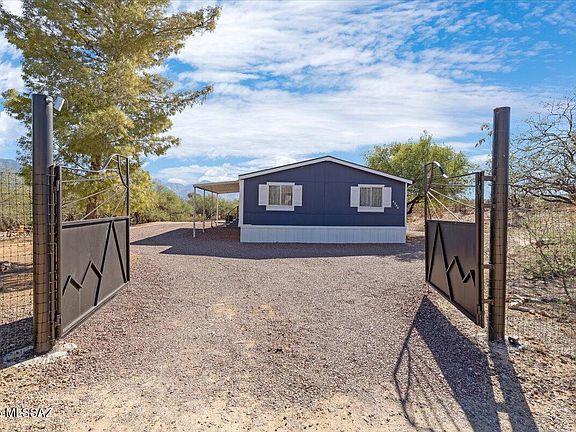 Welcome to 4240 E Pinto Lane, where wide-open desert living meets everyday comfort and rustic charm! This 4 bedroom, 2 bath manufactured home sits on 1.97 fully fenced acres with two gated entrances, offering ample room for all your hobbies, horses, and toys. Bring the RV, there's a full hookup already in place! The property is fully enclosed with an expensive 6-foot horse fence that's unlike anything else in the area, adding value, security, and a touch of equestrian elegance. There's also evidence of former horse paddock poles that were cut off at one time and power run to what used to be a cement pad for watering horses, making this an ideal setup to easily reintroduce horse facilities if desired. Enjoy fresh exterior paint, a 3-year-old roof, a new HVAC system (just 1 year old), and the shade of mature mesquite trees that give the property a true Arizona feel. Step outside to breathtaking Catalina Mountain views, the perfect backdrop for your morning coffee or sunset barbecues.
