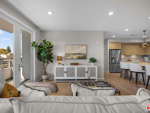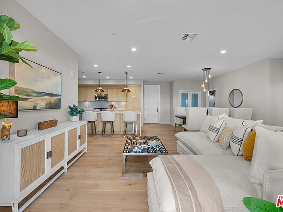 Stunning luxury front-facing Penthouse 401 in Studio City offers modern sophistication and elegance. Built in 2017, it features 9 ft. ceilings and wide-plank oak floors. The spacious living and dining areas open to a private balcony with lush treetop and mountain views. The sleek kitchen includes GE Caf appliances and Caesarstone countertops. The residence features two master bedrooms with luxurious en-suites; the primary retreat offers a fabulous walk-in closet, double vanity, freestanding tub, and spa-like shower. A versatile third bedroom/office offers ample storage. Enjoy in-unit laundry and side-by-side parking in a gated garage. Building amenities include a security system, fitness center, meeting room, sundeck with BBQs, and a bike room. Located in the Carpenter School District and just a block from Ventura Place's popular spots like Joan's on Third.