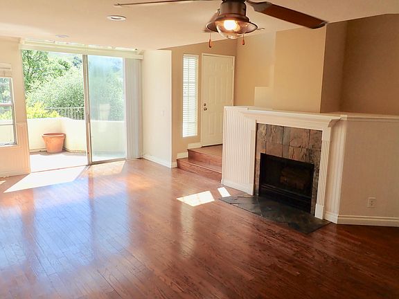 Amazing view location overlooking Malibu Creek! Private gated Calabasas community Two Story 1385 sqft 2 bedroom with 2.5 baths and direct access double car garage with nobody living above or below. Prime must see view location within the "Steeplechase" development in Malibu Canyon 2 blocks south of the 101 Ventura Freeway at 4240 Lost Hills Rd Calabasas. Living room has a wood burning fireplace along with atrium window leading to private outdoor patio area perfect for bbq and table overlooking the protected habitat of Malibu Creek. Spacious dining area and large breakfast bar with brand new slab quartz countertop. Remodeled kitchen has beautiful custom hardwood cabinets with matching stainless dishwasher, microwave, and gas oven/range and refrigerator. Downstairs guest bath. Large interior storage closet that goes under stairwell. Separate laundry room leads from kitchen to garage includes side by side gas washer and dryer. Double car 20' x 20' garage with automatic door. Interior stairwell has high vaulted ceilings with skylight leading to both master bedrooms, each with a full bath. Parking permit for a 3rd vehicle overnight parking within this gated community is also included. Amenities include 2 pool areas, gym, sauna, clubhouse, and private security. Owner pays both water and refuge. Property faces East and gets great light and panoramic views of the oak covered hills and canyon. Must be able to sign a 1 year lease with a Fico score above 700 on credit report and no pets. Award winning Las Virgenes Schools (Lupin Hill Elementary, A E Wright Junior, Calabasas High). Only 1 block from shopping, dining, and Erewhon Organic Market Cafe at Lost Hills/Agoura Road. Just down the street from great outdoor recreation at Malibu Creek State Park. Only 8 miles through the scenic canyon to the beaches of Malibu. Please call for all questions and viewings. Owner pays water & refuge