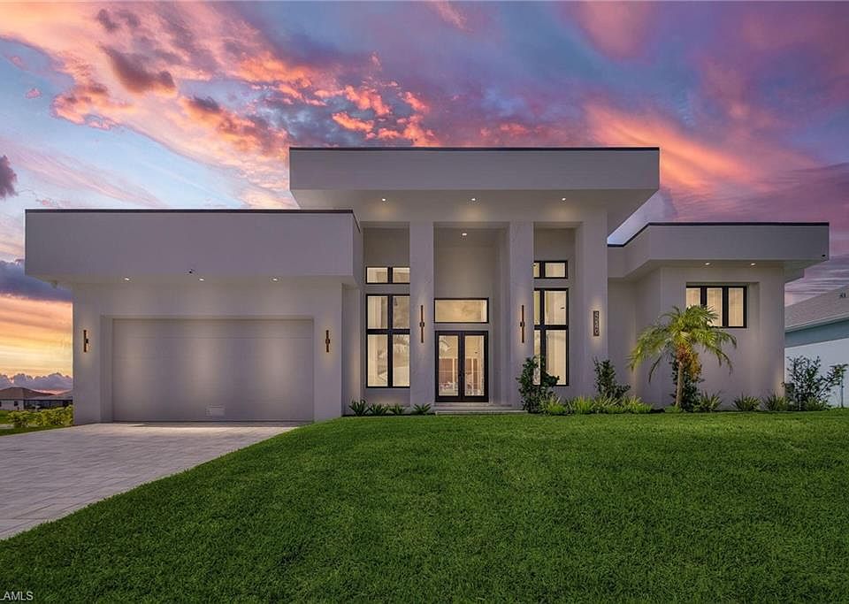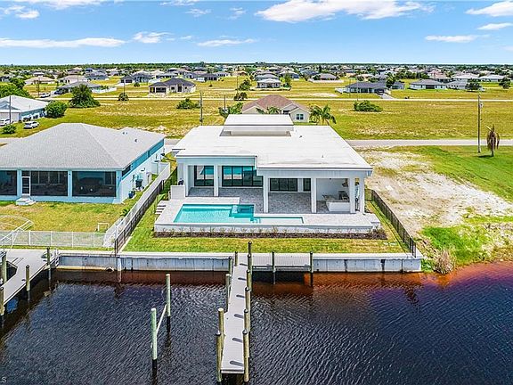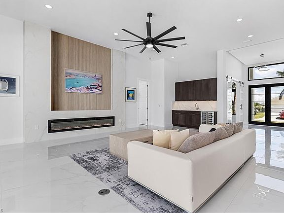 NEW CONSTRUCTION one-of-a-kind custom-designed home, not a builder’s model. Featuring 3 bedrooms, 3 bathrooms, and a versatile den or office that can be used as a permitted fourth bedroom. The home overlooks a 260-foot-wide south-facing canal with no bridges to the Gulf. Dock with 2 slips. Inside, the home offers 2,653 sf of A/C space with a total of 4165sf under roof. 14ft. soaring ceilings and 10-foot impact sliders that lead to a nearly 800 square foot covered lanai. The outdoor space includes a summer kitchen, bar, and a large fully automated saltwater pool with custom spa and sun shelf, all controllable from your phone. The primary suite features a spa-inspired bath with dual vanities, seven-foot LED backlit mirrors, a soaking tub, and a double-entry his and her shower. Throughout the home you’ll find 24 by 48 polished porcelain tiles, a modern fireplace, and a custom tile and wood accent wall. The kitchen includes espresso cabinetry, a ten-foot island, and top-of-the-line Bosch appliances. Every detail has been thoughtfully considered in this exceptional