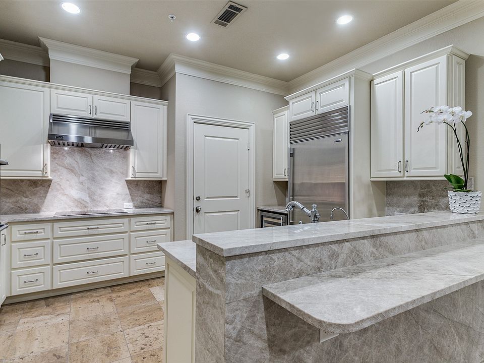 Recently updated, light filed, luxury condominium at The Park Highlander. Direct elevator access into a private foyer and entry with wine bar. Large, combined dinning and living room with Juliet balcony. Kitchen features built in SubZero ,double convection Thermador ovens, induction cooktop and Asko dishwasher. Additional flex space adjoining dinning room has a fireplace. Primary suite & bath has dual vanities, custom built-ins, walk-in closet separate shower and spa tub. Guest bedroom has en-suite bath with custom built-ins and balcony. The boutique Park Highlander luxury condos are well located across the street from The Shops of Highland Park and numerous restaurants. Building amenities: on-site manager, 24 hour concierge, updated lobby. fitness center as well as swimming pool & gardens. Residence comes with 2 parking spaces P1-26 & 27 and a storage room #P1-4B.