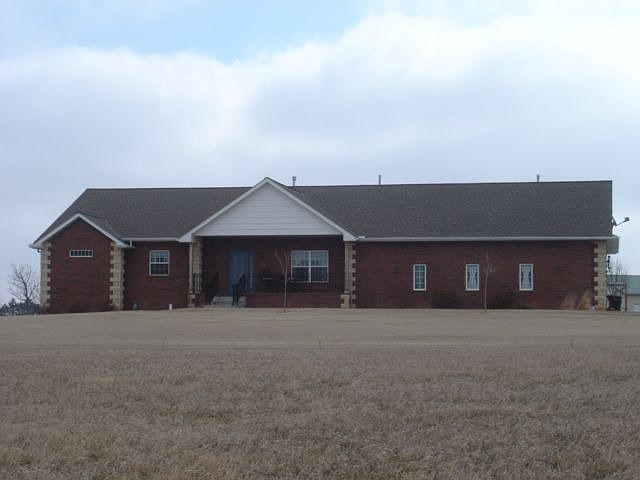 Beautiful 4 BD, 3.5 BA, on approx 15 acres (HORSES) Allowed. pond, open floor plan, lg kitchen with pantry, hardwood floors, Kit/dining room combo plus formal dining room, Security system, main floor laundry w/sink, Master bath has tiled (HEATED) Flooring whirlpool jet tub seperate shower walk in closets, 3 car garage is 4 car deep, has 36x36 out building/barn with loft and 2 horse stalls w/sliding stall doors, is fenced off ready for horses, has sprinkler system on part of the property, covered patio, large wooden deck, septic system, satelite dish, lots and lots of storage. Goddard Schools