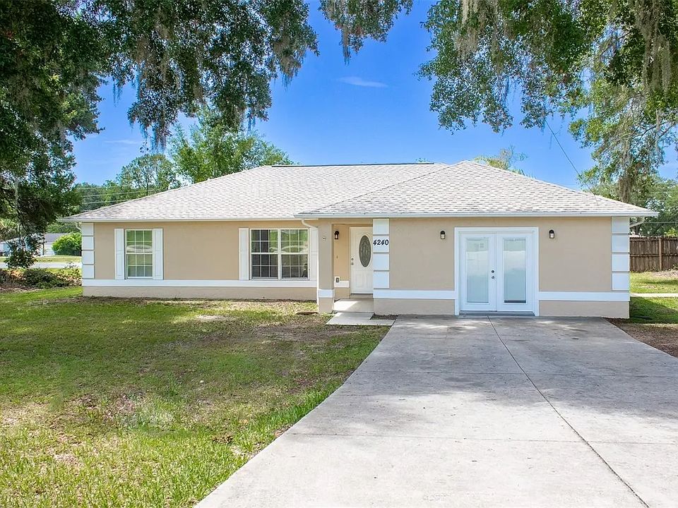 Welcome to this beautifully maintained home nestled on a spacious .37-acre lot in Belleview Heights Estates. NEW ROOF (2025), NEW RANGE AND REFRIGERATOR (2025). This property offers 1, 760 square feet of comfortable living space, the versatile 460 sq ft 4th bedroom/flex room is perfect for a home office, media room, guest suite, or whatever suits your lifestyle. The split floor plan provides added privacy, making it ideal for multi-generational living or visiting guests. Step inside to find stunning porcelain tile flooring throughout, offering both elegance and durability, and enjoy the peace of mind that comes with a very recent new roof. The home also features a convenient inside laundry room, keeping chores tucked neatly out of sight. Outside, a covered garage port protects your vehicles, and the oversized lot gives you plenty of room to relax or entertain. Best of all, you're just minutes from shopping, medical facilities, and a variety of restaurants.
