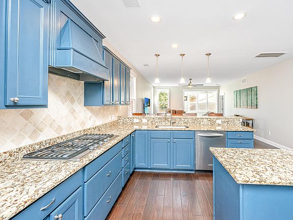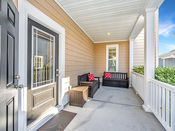 Enjoy classic Charleston style, open living spaces, and the best amenities in West Ashley! A gourmet kitchen features beautiful coastal blue-gray cabinetry, a kitchen island, recessed lighting, and granite countertops. KitchenAid appliances include a dishwasher, gas cooktop, and wall oven with built in microwave/convection oven. On one side of the kitchen a pass through leads to a separate dining room with tiered ceiling. The other side of the kitchen opens to the family room in a layout that is perfect for hosting gatherings. Note the family room extends to a large sunroom with 6 oversized windows and a glass door leading to the covered breezeway. Relax in this shaded outdoor living space, grill out on the deck, or enjoy the fenced backyard which backs up to a wooded HOA area. You'llfind the primary suite downstairs with an enviable walk in closet, a soaking tub with separate standing shower, private water closet, and dual vanity sink. Note the nine foot ceilings and engineered wood flooring throughout the downstairs which help make this space feel open and modern. Upstairs, an oversized loft creates ideal flexibility for use as a play room, media center, or bonus living space. An upstairs porch is conveniently located off this loft perfect for outdoor reading, homework, or enjoying a cup of coffee. A home office is situated off the loft as well with French doors to provide privacy. Two well appointed bedrooms share a Jack and Jill bath with a dual vanity sink separate from the shower and toilet room. A third upstairs bedroom has an adjacent bath that is accessible from the loft. Note that laundry capabilities are both upstairs and downstairs in this well planned home design. Carolina Bay is one of West Ashley's most sought after communities for its upscale feel and excellent location just minutes from shopping, restaurants, historic sites, Interstate 526, and a new Charleston County Library. Carolina Bay also boasts fantastic amenities including 3 swimming pools, covered pavilion with outdoor fireplace, kids' playground, dog park, and walkways surrounding the neighborhood. Come experience the open spaces and Charleston lifestyle at this move in ready charmer!