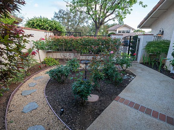 Experience North Ranch, this is the only detached single story in Fairgreen's. This highly upgraded gem is a perfect 10, over 2100 square feet of elegant living. 190 k in recent updates, cathedral ceilings, wood floors, private patios, mature Oak tree, granite kitchen, three generous bedrooms, laundry room, completely finished garage, plantation shutters, private front courtyard, beautiful English gardens, built-in entertainment center and desk work center, upgraded bathrooms Kohler/Grohe, electric awning over atrium, new HVAC, tankless water heater, this perfect one story has low maintenance grounds and an awesome location.