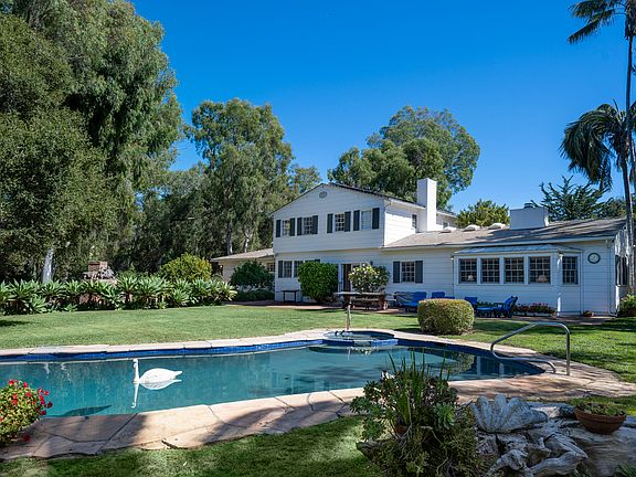 In one of Hope Ranch's most coveted enclaves, peacefully set on 2.85 park-like acres, this timeless home features 4 bedrooms, 4.5 baths, w/ separate guest wing, and guest house. Blending classic Santa Barbara charm w/ relaxed ranch-style living, it's been lovingly cared for by the same family for nearly 50 yrs. This classic home built in 1940 offers formal living + dining rooms, den w/ bar, private office, sun-filled patios, pool, BBQ terrace, sweeping lawns, and three-stall stables & paddock. This historic hideaway surrounded by unsurpassed natural beauty w/ Hope Ranch's privately accessed beach and over 20 acres of bridal trails. This is a rare Hope Ranch legacy estate offering space, serenity, and timeless sophistication in one of the most prestigious California coastline communities.