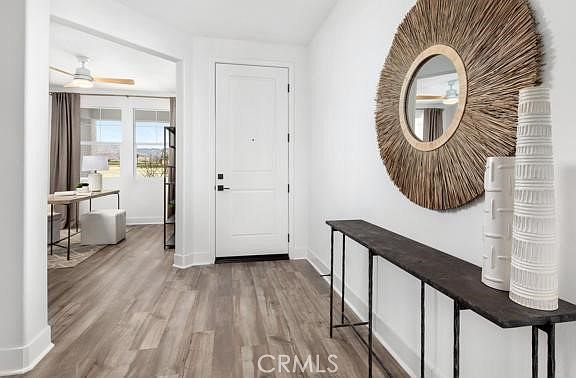 This two-story residence features 3 bedrooms, 3 bathrooms, a dedicated home office, and an upstairs loft for versatile living. The chef’s kitchen boasts dark grey cabinetry, sleek quartz countertops, pendant lighting, a large island, and premium stainless-steel appliances, seamlessly flowing into the open dining and great room. Sliding glass doors extend the living space to a covered patio—perfect for entertaining or enjoying year-round indoor-outdoor living.