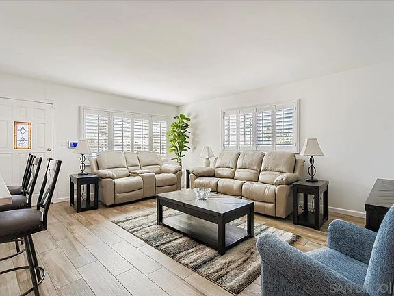 Welcome to 4242 Appleton Street, a beautifully upgraded 4-bedroom, 2-bath single-story home in the heart of Clairemont. Featuring an open floor plan and approximately 1,404 sq. ft. of stylish living space, this home blends comfort, function, and thoughtful design. The remodeled kitchen is a true showcase. Featured in the Dixieline catalog showcasing modern finishes, upgraded appliances, and a seamless connection to the dining and living areas. Natural light flows throughout, creating an inviting and airy atmosphere. Step into your private backyard retreat which is perfect for hosting and entertaining. Enjoy a solar-heated pool, built-in BBQ island, and a spacious Tuff Shed for storage or hobbies. Energy efficiency is front and center with 29 fully paid-off solar panels, keeping utility costs low year-round. Located just minutes from shopping, dining, parks, top schools, and freeway access, this home offers the best of San Diego living with unbeatable convenience.