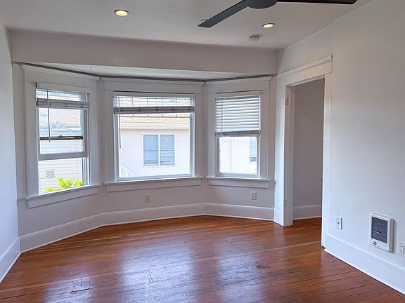 Large windowsElegant tile bathroomsStainless steel appliancesOriginal hardwood floorsHorizontal blindsBright white-cabinet kitchenCeiling fans