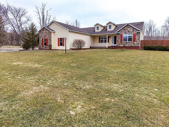 Welcome home to this beautiful ranch home, sitting on just under a two acre lot. Enjoy vaulted ceilings, a gas fireplace, hardwood floors and an open layout as you walk in. This split ranch layout features the primary bedroom on opposite sides of the house from the other bedrooms. The finished basement features an additional Bedroom, half bathroom, workout area, built in bar and game room. Still plenty of storage too! Outside sitback and relax in your screened in porch. During the summer enjoy a dip in your heated pool to cool off.