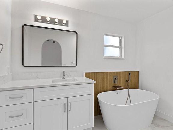 Stunning 3/2 Pool home remodeled in 2024 with gorgeous kitchen and bathrooms! Minutes from town and beaches. Completely move in ready. Offering new Calacatta quartz kitchen with soft close shaker cabinets and high end finishes, spa like tile bathroom with high end vanity, waterproof laminate floors, fresh paint in and out, Brand new Samsung appliances, new fixtures and landscaping. Easy access to i95 and shopping. Move in ready condition, you wont need to lift a finger. No HOA!! Come relax in this gorgeous home and live your Florida Dream! Use Showing time to book. 2019 AC, 2022 Roof, 2024 Water heater.