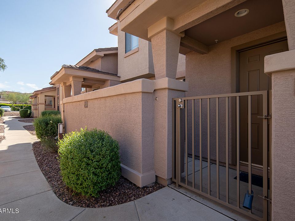 Awesome condo in the heart of Anthem! Gated community is perfect for lock-and-leave or year-round living! Rare end unit near the wash gives you lots of privacy & stunning desert vistas. Private courtyard entry. Great room w/ high ceilings is light & airy. Kitchen w/ over-sink window & newer stainless steel appliances - refrigerator included! Spacious walk-in pantry. Primary bedroom is downstairs w/ its own exit to the private courtyard. The en suite bathroom has 2 sinks, shower + large walk-in closet. Upstairs you will find 2 additional bedrooms (that's right -3 BEDROOMS!) + guest bath & sizeable laundry room complete w/ washer & dryer + folding counter. Ceiling fans throughout. Water heater new 2025. 2- car garage. Community gym, clubhouse, spa & heated pool + ALL ANTHEM AMENITIES. This is a master-planned community with award-winning amenities like: a 63 acre community park, resort-style water park, sports fields, playgrounds, tennis & pickleball complexes, rock wall, fitness center, dog park, indoor/outdoor courts, Gr8t Skate Park, sand volleyball, splash pads, Daisy Mountain Railway (kiddie), 16 acre catch-and-release fishing lake, roller hockey rink + miles of trails for hiking and biking. Perfectly located in the heart of everything this home is only 30 minutes to Lake Pleasant for boating and picnics & about 40 minutes to downtown & Sky Harbor Airport. Start living - today.
