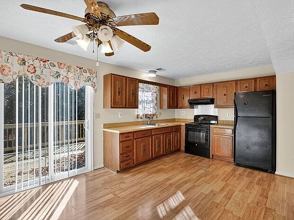 The main level welcomes you with a spacious living area, updated flooring, and large windows that fill the home with natural light. The kitchen includes generous cabinet storage along with essential appliances such as a refrigerator and stove/oven.