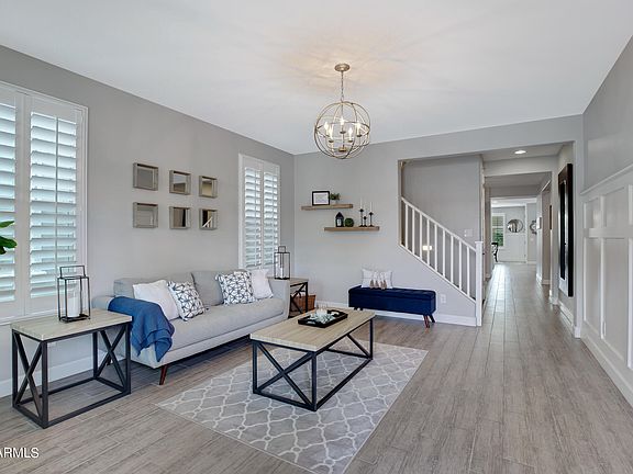 Gorgeous home in the highly sought after Morrison Ranch in Gilbert, AZ! This incredibly upgraded and decorated home has it all. Great curb appeal and directly across the street from the neighborhood park, great for playing with the kids or walking your pets. Walk inside this beautiful home with wood look tile, board and batten walls with wood shutters and 6 inch baseboards. The chef in you will love this dream kitchen with staggered cabinets, granite countertops, gas range and walk in pantry. Built in entertainment center with fireplace alongside the huge 3 door glass slider leading to the patio. Covered patio has automatic shade curtains that come down to provide shade and privacy, perfect for those warm summer days by the pool. Upstairs has a loft currently used as a movie room, but can be a great play area or study for the kids. Two bedrooms share a Jack and Jill style bathroom with the other larger bedroom having it's own bathroom nearby. Master bedroom has a huge bathroom vanity with double sinks and tons of space. The walk-in closet also connects to your laundry room, which is very convenient. This one is gorgeous inside and outside, come see it for yourself today!