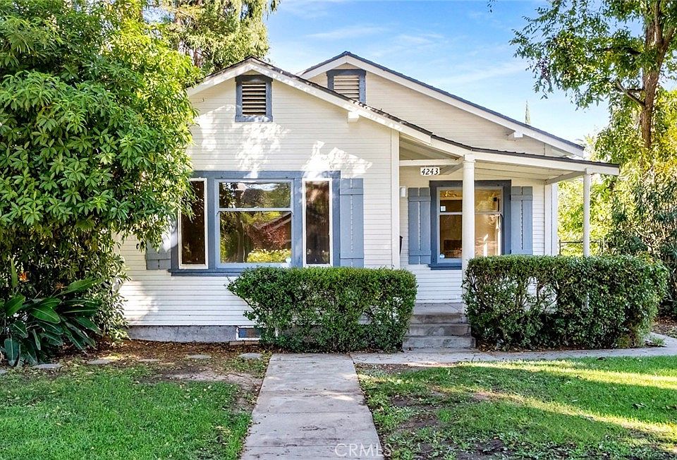 Affordable and cute 3-bedroom "Wood Streets" cottage! You're greeted by a charming front porch with a glass-paneled front door and then a spacious living room with lots of natural light. The home was originally built with a murphy bed in the living room alcove, but a faux fireplace would fit nicely now. Original hardwood floors in most rooms, with some carpeting. The kitchen is spacious and will accommodate a small preparation island, and has lots of cabinetry and possibilities, as well as an adjacent laundry room. The original built-in hutch in the formal dining room is just scrumptious! Imagine entertaining your family during the holidays and decorating the hutch mantel. The whole house fan works wonders, and there are even some of the original glass door knobs remaining. The bedrooms are of good size, and the backyard will delight with space for a guest house and/or RV parking off the alley (or in the long gated driveway). The potting shed and attached gazebo are fun if you like to garden and entertain, or use the potting shed as a catio or child's playhouse, or just extra storage in addition to the spacious detached 2-car garage. Fruit trees and automatic sprinklers complete this 10,000+ sq ft lot... with room to spare. This home has been in the same family for almost 50 years, and is longing for a new steward! Welcome to one of the most desirable and familial neighborhoods in all of Riverside County!