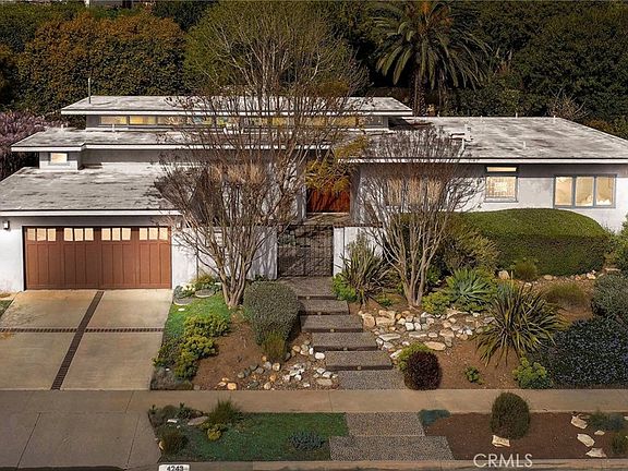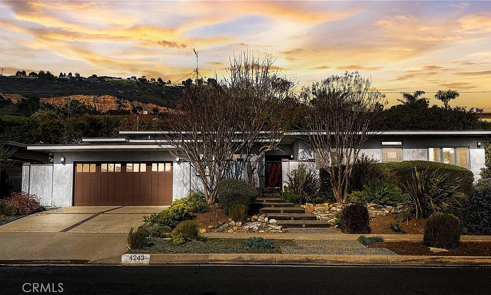 Welcome to 4243 Exultant Drive. This beautifully remodeled 4 bedroom 3 bathroom single level home is located in the highly sought after neighborhood of Seaview, located less than 1 mile from the ocean and just minutes to the exclusive Portuguese Bend Beach Club. This well appointed house will impress you from the minute you open the door. As you enter the house, you will immediately notice the quality finishes, bright and sophisticated feel of the house with 12ft high ceilings, recessed lights, crown molding, custom wood accents, and the natural light that flows in from walls of custom glass windows and doors that lead out to the designer landscaped backyard. The open concept kitchen and living room allows you to enjoy the views of the backyard and entertain family and friends while preparing lavish meals in your custom kitchen complete with all top of the line Thermador appliances - double oven, range, dishwasher and refrigerator as well as KraftMaid custom cabinetry. Just off the kitchen is the laundry area, powder room and direct access to your finished 2 car garage. The layout of the home is perfect with the privacy of having all 4 bedrooms and 2 baths located down the hall from the entry. Retreat to your primary bedroom with large French doors that lead to the peaceful and serene backyard. Spend time relaxing in your remodeled bathroom complete with custom vanity and cabinetry. The outdoor living space is an entertainers delight with 4 separate patios off of the dining room, living room, and primary suite. Enjoy your favorite beverage outside underneath the magical whimsy of the established wisteria and smell the sweet scent of blooming roses from the rose garden when the ocean breeze sets in. If your favorite beverage includes citrus, you are steps away from your own personal citrus garden with lemons, grapefruits and limes. The large backyard also boasts high end pet friendly artificial turf with a terraced hillside to enjoy your own personal oasis.
