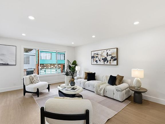 Step into elegance at 4243 Folsom Street, a modern sanctuary nestled in the vibrant Bernal Heights neighborhood of San Francisco. This refined residence offers three spacious bedrooms and two pristine bathrooms, enveloped within 1,539 square feet of thoughtfully designed living space. The heart of the home is the open kitchen and dining area, showcasing brand new high-end appliances, a full pantry wall, and an island with an oversized sink, perfect for culinary enthusiasts. Skylight, recessed lighting and artist light fixtures throughout enhance the ambiance, illuminating luxurious new flooring. All new windows, roofing, HVAC, electrical, plumbing, and sidings at the front and back of the building ensure peace of mind and comfort.