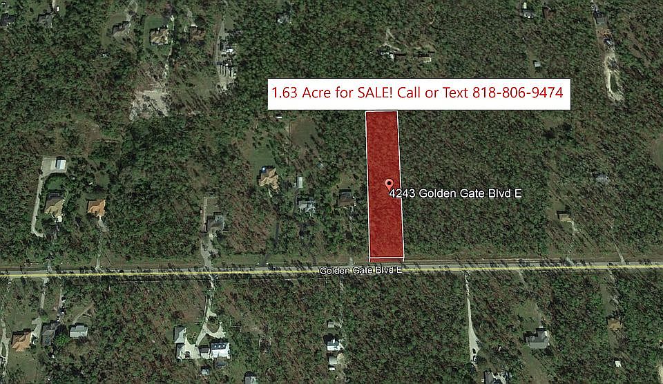 Sold as a wetland. DEP Report Available. Beautiful 1.64 Acre Vacant Lot just minutes from beautiful beaches of Naples, Florida. It can be used for a single-family construction. New shopping center going in just down the street at Golden Gate Blvd and Everglades. The address is 4243 Golden Gate Blvd E Naples, FL 34120 and parcel number 40745800004. Buyer to conduct their own inspection.