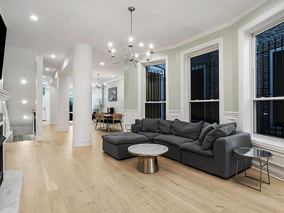 This stunning historic Greystone, located in the heart of Bronzeville on iconic King Drive, seamlessly blends timeless Chicago architecture with modern luxury. Thoughtfully renovated, the home features a spacious and airy main level designed for both everyday living and entertaining. The first floor includes a formal sitting room, dining room, living room, and a stylish kitchen-complete with quartz countertops, stainless steel appliances, and a convenient powder room. Elegant engineered white oak floors flow throughout the home, while beautiful arched windows on the east and west sides flood the space with natural light. Soaring 10-foot+ ceilings enhance the home's grand and open feel. With over 4,000 square feet, the home offers five generously sized bedrooms and four full bathrooms, plus an additional powder room. The luxurious primary suite includes a spa-like ensuite with a soaking tub. The second and third bedrooms share a well-appointed Jack and Jill bath. Enjoy outdoor living with a deck located just off the kitchen-ideal for summer gatherings-and a detached garage featuring a party door for flexible entertaining options. Located near Mariano's, the Green Line train station, Washington Park, and easy access to the interstate, this home offers both elegance and convenience. Don't miss the opportunity to make this incredible home your own