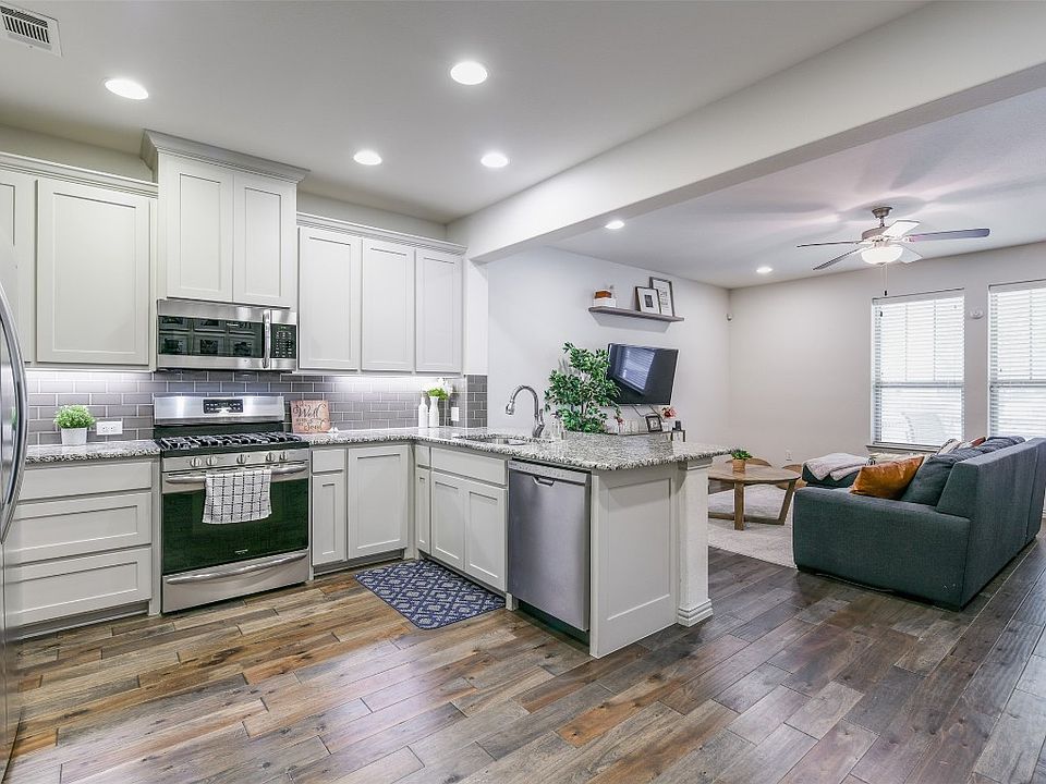 Open floor plan High ceilings, upgraded flooring. Custom kitchen with elegant backsplash and cabinetry. Beautiful Master bathroom with tons of counter space with separate vanities. Rear entry with a 2-car garage. Near Cowboys' stadium, Ranger's ballpark and DFW airport for commuters.