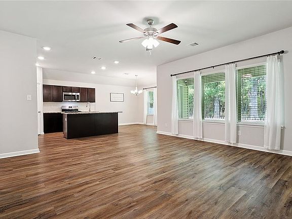 This super cute home is available now! 4beds/2baths situated on a lot that backs up to the woods and has a fence for added privacy. Granite countertops and huge walk-in closet. All kitchen appliances remain, including the refrigerator. Flood zone X.