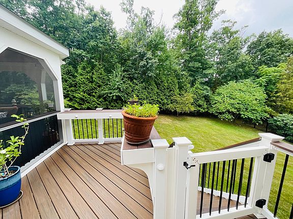Large deck and covered gazebo off the back, with wooded backyard for year long enjoyment.