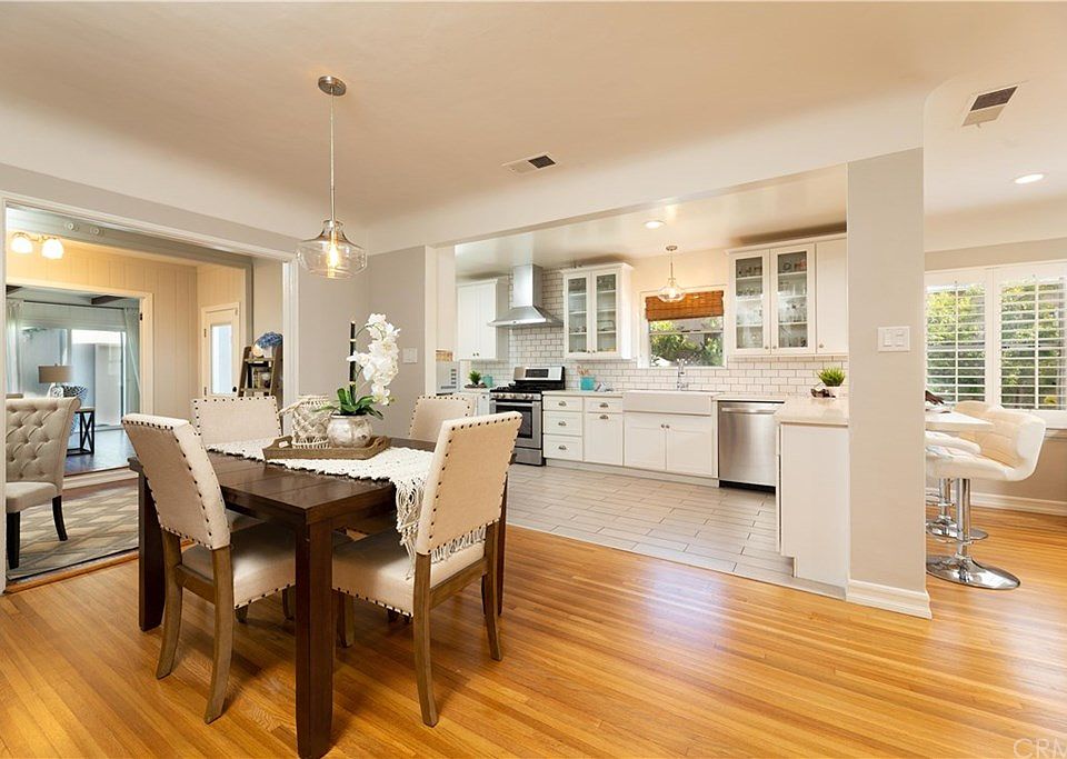 Open room concept living space. Welcome to the quiet neighborhood setting of Bixby Highlands. This home has two large bedrooms, one of them the Master with a 3/4 bath. The family room situated in the back of the home has a brick fireplace & closets, and could be converted to a 3rd bedroom. The highlight of this home is the open concept from the updated kitchen into the dining area and living room, and has recessed lighting. In between the dining and family room is yet another area that has been used as an office. The kitchen includes a stainless fridge with water line, dishwasher, and 5 burner stove. The long driveway leads to an oversized garage for 2 cars and includes washer, dryer and a refrigerator. Driveway can fit 5 cars total or an RV behind the gate. The yard is very private. Close to all the Bixby Knolls happenings, eateries, breweries and shops. This home is a gem and a must see.