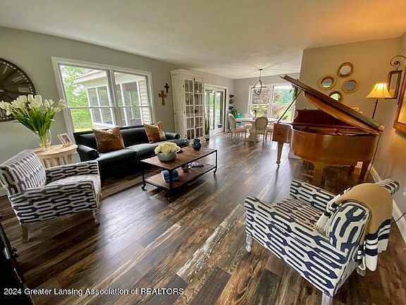 Multiple offers, Highest & Best 7/1/24 at 5:00pm. Welcome to 4245 Beeman Rd Williamston! Gorgeously updated & tastefully remodeled Home! 7+ Acres of Nature's Paradise w/ pond, trails & trees! Open Floor Plan! Kitchen offers Paxton Dekton Trilium Counters, Kohler Faucet & Porcelain Sink! Architectural Armstrong Wood Laminate flooring throughout. Family Room w/gas fireplace (could easily be converted back to wood) 15x18 Sunroom w/deck for entertaining! Geothermal Heat (natural gas also installed) 3 spacious Bedrooms upper level w/2 full baths! The First floor Office can also be used as a 4th Bedroom. Don't Miss this amazing Home & Property located conveniently to shopping, restaurants & Freeway!