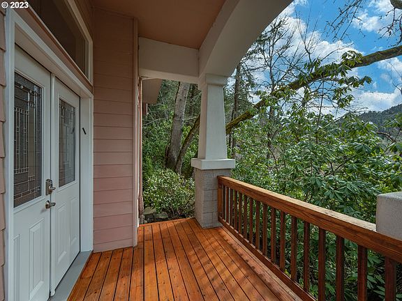 What a terrific South Eugene home with exceptional views from every window! This attractive contemporary is perched near the top of a private road and is truly one of a kind! Perfectly designed for its setting, each level offers spacious rooms plus the excellent separation of space. The light-filled great room is so inviting, with an eating bar, fireplace, cherry hardwood floors, vaulted ceiling, built-ins, and skylights. It is ideal for everyday living or gatherings. A nod to the 1960s is seen with the conversation pit and wet bar on the first floor. The primary suite occupies the top level, is very spacious, and has a large bedroom, personal deck, fully remodeled bathroom, and double walk-in closets. It includes a second room (office, nursery, or workout space). The 3rd level has two bedrooms and a full bathroom. Across the back is a large deck, which is perfect for barbecues and outdoor enjoyment. Many improvements and updates were made by the current owners: new carpet (steps & hall), laminate floors, interior paint, and crawlspace improvements. This home is in a great location, near Ridgeline Trail, Hideaway & Provisions bakeries, and has easy access to SEHS, U of O, LCC & Amazon Park.