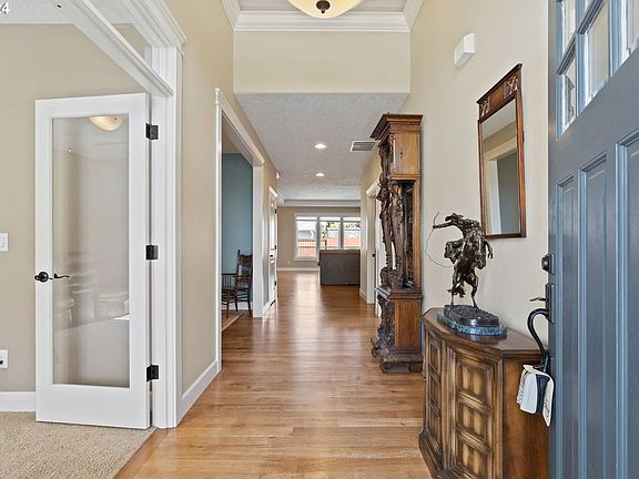 Come see this custom built Chet DeBois home showcasing 3 bedrooms, 2 1/2 bathrooms, an office, formal dining room, and spanning 2350 square feet. The chef's kitchen is a culinary haven, complemented by stainless steel gas appliances, a butlers pantry and custom oak hardwood floors throughout the main living area. This home offers ADA accessibility, a large primary suite bathroom complete with a luxurious custom walk-in shower. With a spacious 3-car garage and a propane fireplace nestled in the backyard, this property is both practical and inviting. Meticulously landscaped equipped with a sprinkler system. Plus, enjoy the peace of mind provided by a fully fenced yard.
