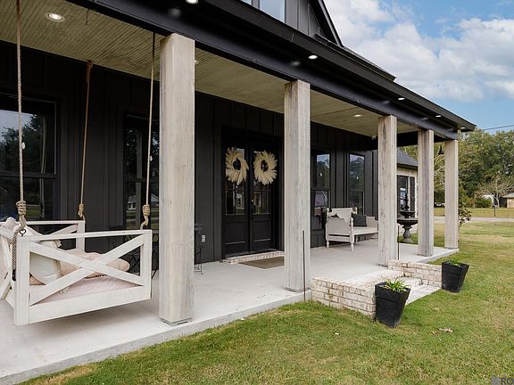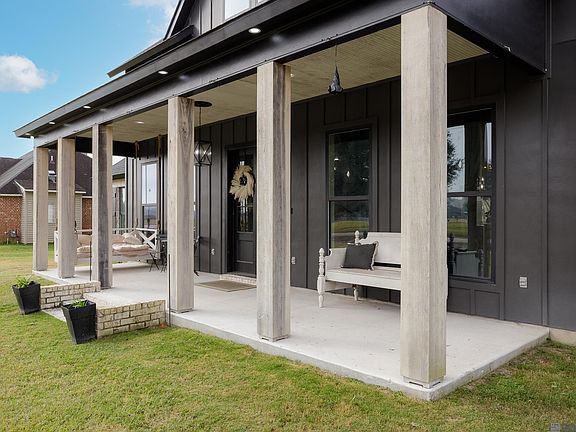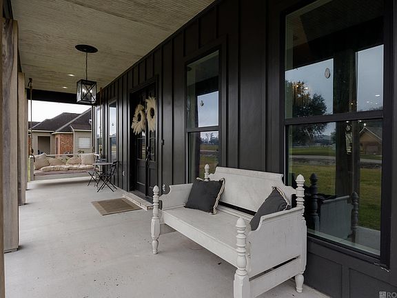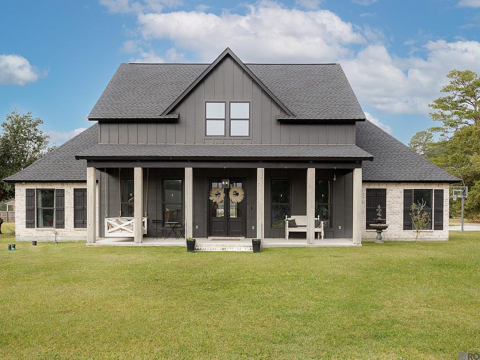 Experience luxury living on a beautifully sized 0.77-acre rural tract in Gonzales. This exceptional 5-bedroom, 4-bath home welcomes you with a wide front porch accented by multi-color soffit lighting wrapped around the front columns. Step into a bright, open-concept interior featuring luxury vinyl flooring, tall ceilings with recessed lighting, brick columns framed by cypress beams, and a wall of windows that bathe the home in natural light. Thoughtful modern conveniences include built-in charging ports, night-light receptacles, and a stunning floor-to-ceiling brick fireplace with a Birch log set and gas ignition. The gourmet kitchen offers white custom cabinetry with abundant storage, Quartz countertops, a custom tile backsplash, and an oversized island with a breakfast bar, perfect for casual meals. Cooking is a pleasure with a gas-burner cooktop and pot filler, a wall oven, and custom floating shelves. A formal dining room with an elegant chandelier and stylish sliding barn door is the ideal setting for gatherings with family and friends. All bedrooms are generously sized with ample closet space, and the primary suite feels like a retreat with double vanities, an oversized custom shower with dual shower heads, and a spacious freestanding soaking tub. Work-from-home convenience is elevated by a dedicated office featuring a built-in desk and custom cabinetry. The mudroom and large laundry room also offer custom cabinetry for additional organization. Outdoor living is at its best under the extended covered patio with a fully equipped outdoor kitchen, or on the expansive open terrace overlooking the large backyard. For added comfort and security, the home includes a transfer switch for a whole-house generator, an 8-camera surveillance system, a Ring doorbell, floodlights, a built-in mosquito misting system, and gutters with gutter guards. This thoughtfully designed home is your perfect retreat.