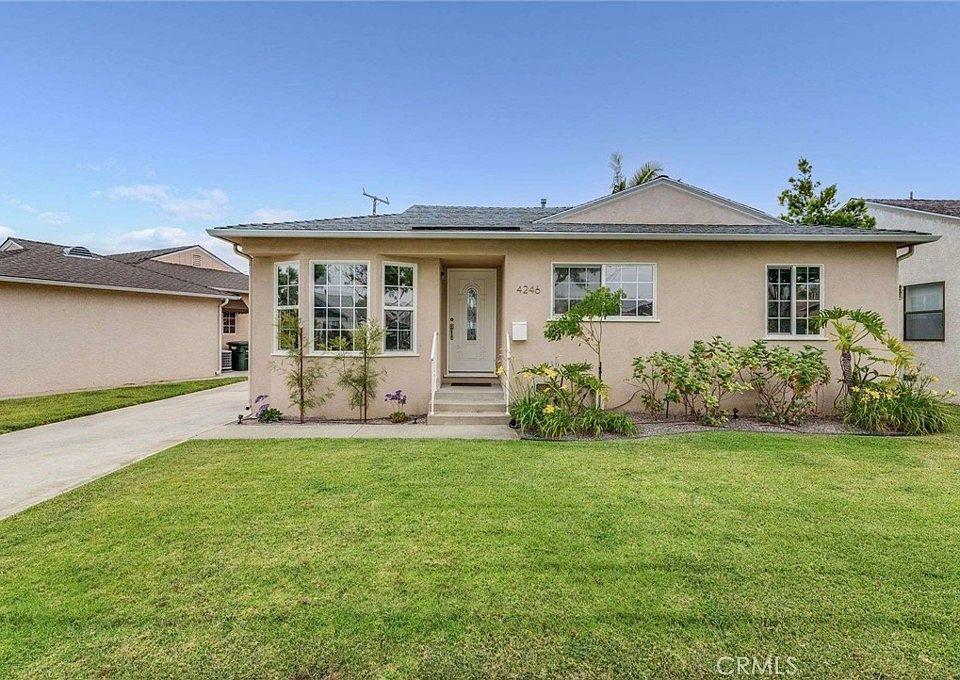 Welcome to this stunning Lakewood beauty. It features the popular Plan F layout, which is known for its private rear living room. As you enter the home, you'll immediately notice the beautiful original hardwood floors that add warmth and character. A formal dining area with a charming bay window awaits to the left of the entryway, offering a perfect space for family meals and entertaining. The remodeled kitchen boasts light wood cabinets, granite countertops, stainless steel appliances, and a large pantry, combining functionality with modern style. Adjacent to the kitchen, you'll find an inside laundry area with a mini office space, ideal for quick work tasks or home organization. The living room, situated at the rear of the home, overlooks the backyard and is bathed in natural light. This home features three generously sized bedrooms, providing ample space for family and guests. The updated bathroom adds a touch of modern convenience. Outside, you'll discover a covered patio perfect for outdoor dining and entertaining, a long driveway for additional parking, and a two-car garage offering plenty of storage. Extra amenities include central air and heat, tinted dual pane windows, recessed lighting, a newer water heater, copper plumbing, and fresh interior paint. Close to the LBX for shopping and eating experiences.
