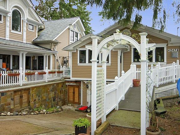 Victorian style home with 4 bedrooms, 3.5 baths. Formal and informal spaces on the main level with chef's kitchen, breakfast room and adjacent family room. Master suite up with 3 additional bedrooms and laundry. Large level lot, 2 car garage and a separate 2 bedroom, one bath ADU easily rentable. Mid Island, walk to St, Monica's, Mercer Island High School and the library. Regulation squash court in the lower level, two car garage. Sold "as is"
