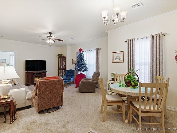 Beautiful, move-in ready home in a 55 and over, gated community in Sand Springs. You will love the ease and accessibility of the home, the convenience of the location, and the friendly neighborhood. Home has two large bedrooms and a dedicated office with plenty of living space. Home has been well maintained and is a single family home, not a part of a duplex. Brand new HVAC system & newer roof as well.