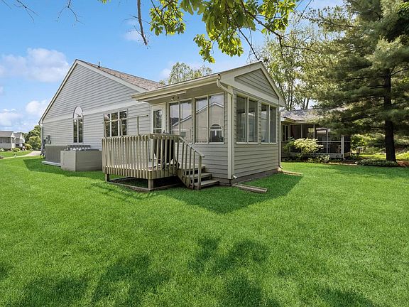 Inside, vaulted ceilings elevate the formal dining area and the inviting living room, which features a charming double-sided gas fireplace. Just off the living room, a delightful 12' x 12' sunroom—enhanced with electric baseboard heat—provides a warm and cozy space to enjoy on even some of the colder days.