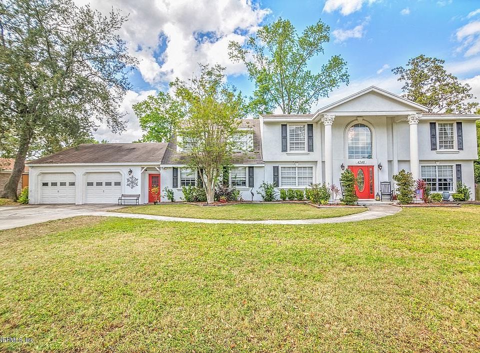 Stately Colonial with deep water access. Fall in love with this well cared for home. The vaulted foyer leads to a spacious formal dining area perfect for large gatherings. Keep going through to the bright white kitchen with breakfast space; or go outside to the 864 sqft deck overlooking the pool with views to the water. Down the hall you will find a full bathroom and family room with a set of french doors to the deck. Just a few steps down you'll have freedom to choose how to use the large flex room (it even has a murphy bed built in). Upstairs you will find the master and 3 more bedrooms as well as 3 full bathrooms. The oversized 2 car garage has plenty of extra storage space including a separate tool/storage room. Experience the outdoors on the expansive deck overlooking the pool.